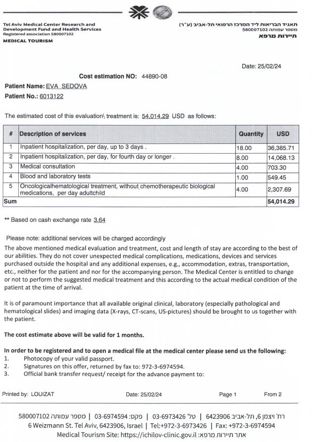 These expenses cover various aspects of care, including hospital stays, medications, procedures, and follow-up appointments.Utilization of FundsThe funds raised through this campaign are crucial for covering the extensive costs of Eva's treatment and care. This includes medical expenses, supportive therapies, and any unforeseen costs that may arise during her journey to recovery. Your generous contributions directly support Eva and her family in managing these financial burdens, allowing them to focus on her health and well-being.Your support is instrumental in providing Eva with the necessary resources to combat this disease. Every donation brings us closer to the goal and offers hope to Eva and her loved ones during this challenging time.